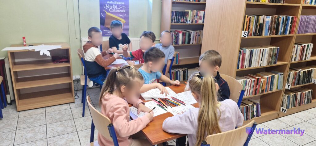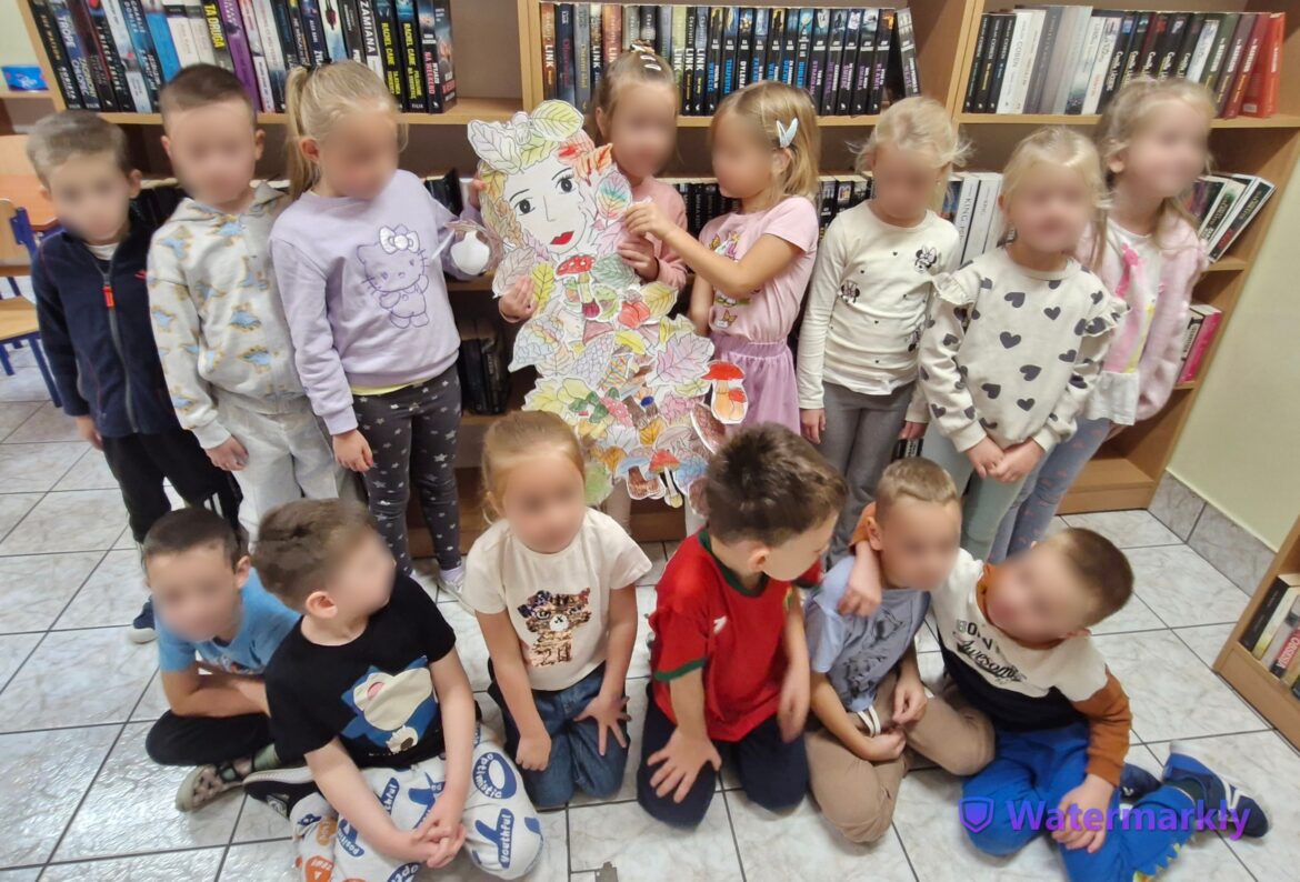 Dzisiaj w naszej bibliotece odbyło się spotkanie z Panią Jesienią, w którym uczestniczyły dzieci z grupy przedszkolnej. Mali czytelnicy wysłuchali wierszy o jesieni oraz opowieści z książeczki „Kicia Kocia w bibliotece”. Po części literackiej przyszedł czas na twórcze zabawy – dzieci kolorowały jesienne atrybuty: liście, kasztany, żołędzie i grzyby. Następnie z przygotowanych elementów wspólnie stworzyły piękny portret Pani Jesieni, który ozdobił przedszkolną salę i wprowadził wszystkich w ciepły, jesienny nastrój. Takie zajęcia to doskonała okazja do wprowadzania najmłodszych w świat literatury i rozwijania ich zainteresowań czytelniczych.
